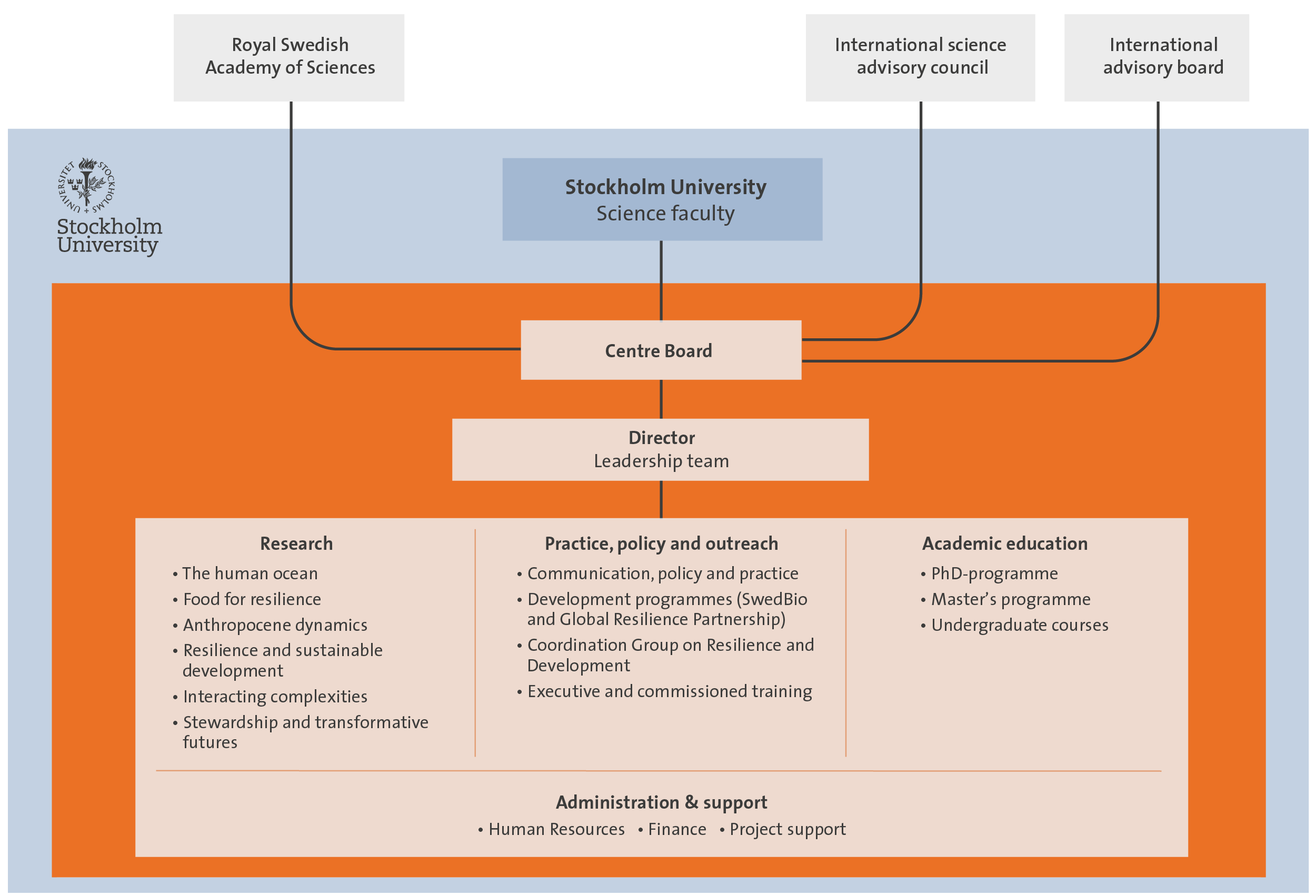 Stockholm Resilience Centre (SRC) is a joint initiative between Stockholm University and the Beijer Institute of Ecological Economics at The Royal Swedish Academy Sciences, located within the Faculty of Science at Stockholm University.